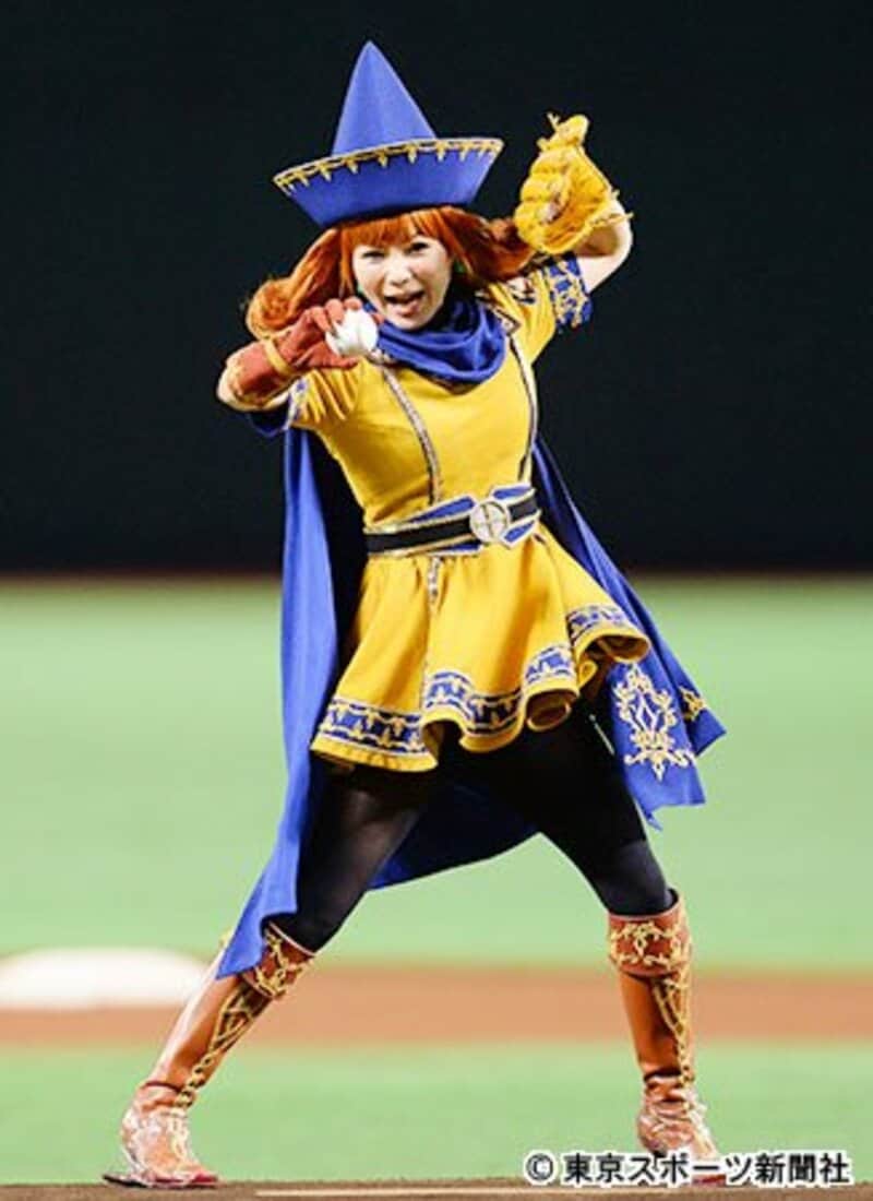 写真:中川翔子「アリーナ」コスプレで始球式「ノーバンならずで悔しいです」