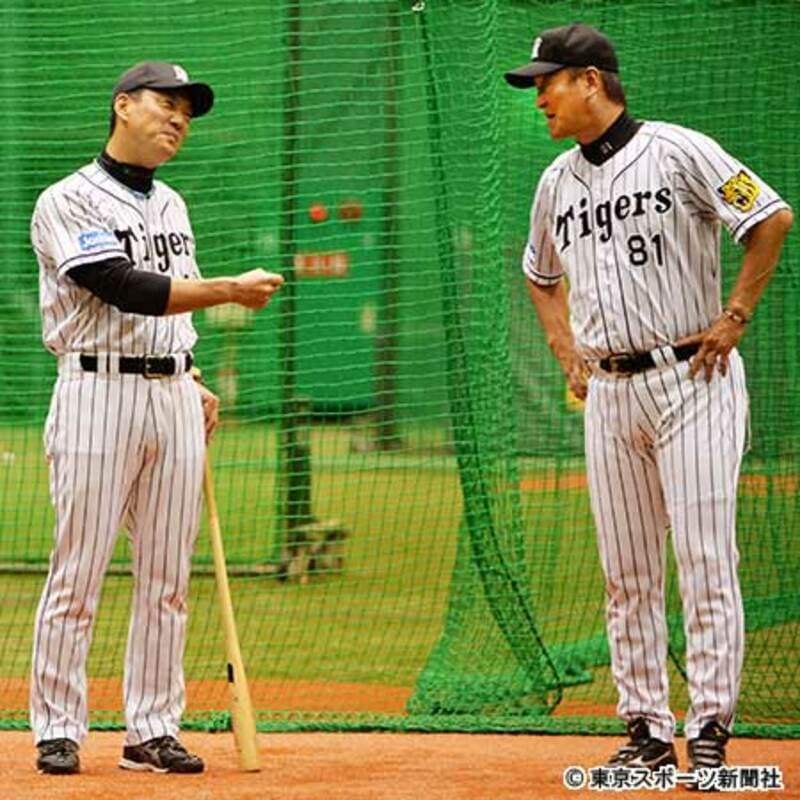 金本監督(左)と片岡打撃コーチは来年もスタメンに頭を悩ませる?