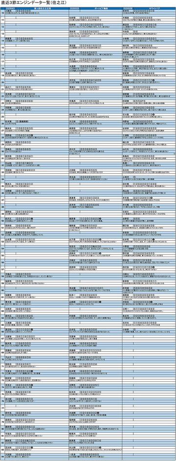 写真:【8日更新】ボートレース住之江 直近3節エンジンデータ