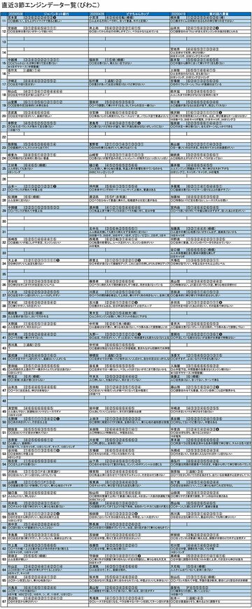 写真:【18日更新】ボートレースびわこ 直近3節エンジンデータ