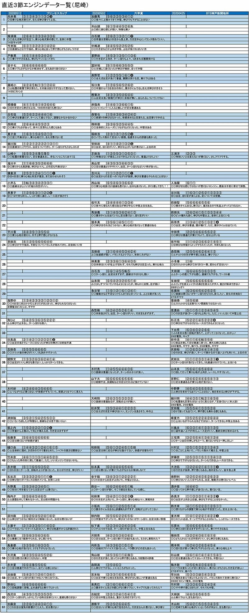 写真:【18日更新】ボートレース尼崎 直近3節エンジンデータ