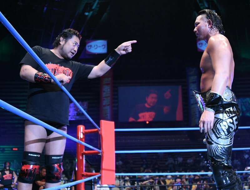 新3冠王者のジェイク(右)を挑発する諏訪魔(東スポWeb)