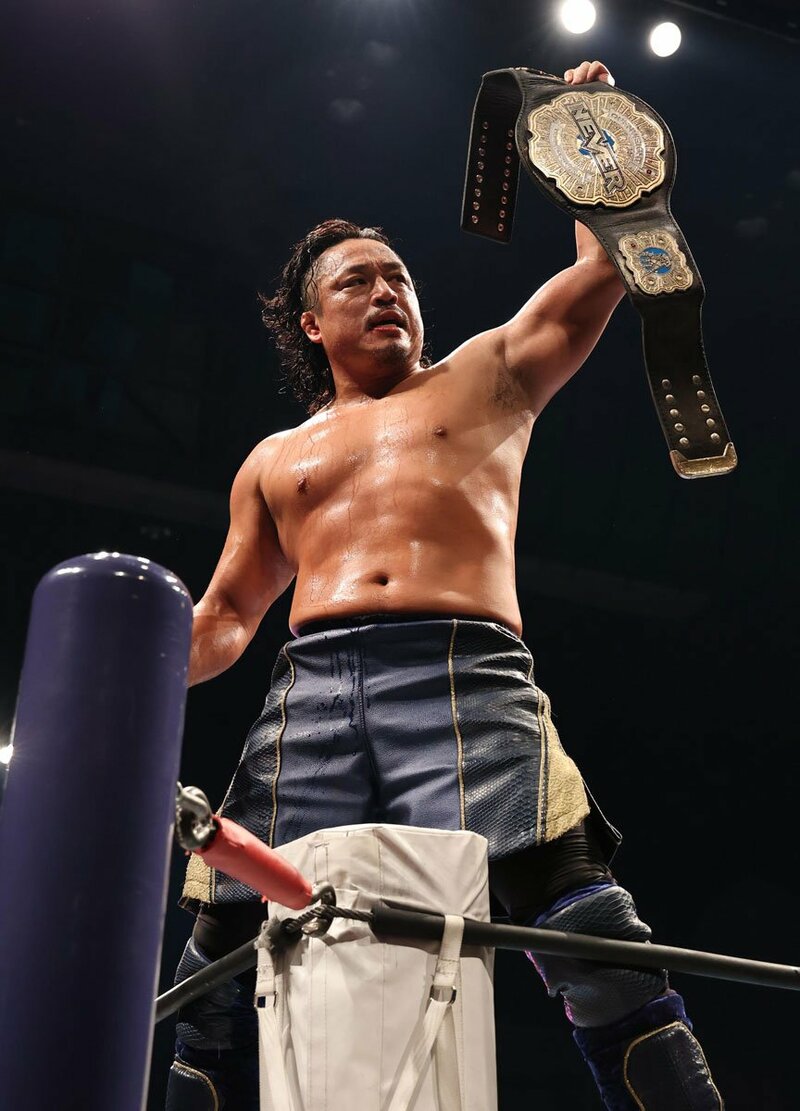 ベルトを掲げる後藤洋央紀