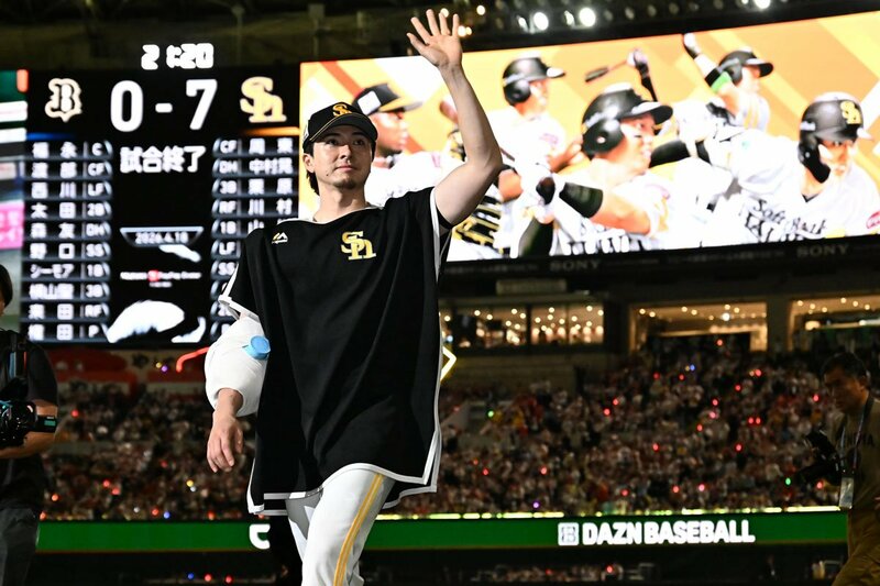 ファンの声援に応えるヒーローのソフトバンク・上沢直之