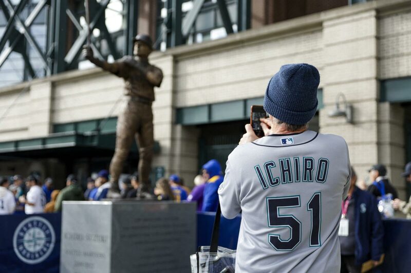 銅像となったイチロー氏の雄姿(ロイター)