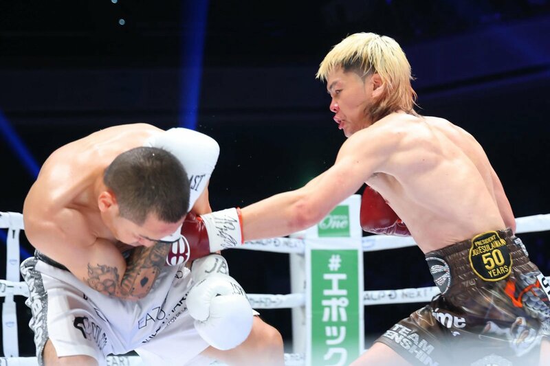 エストラダにパンチを浴びせる那須川天心