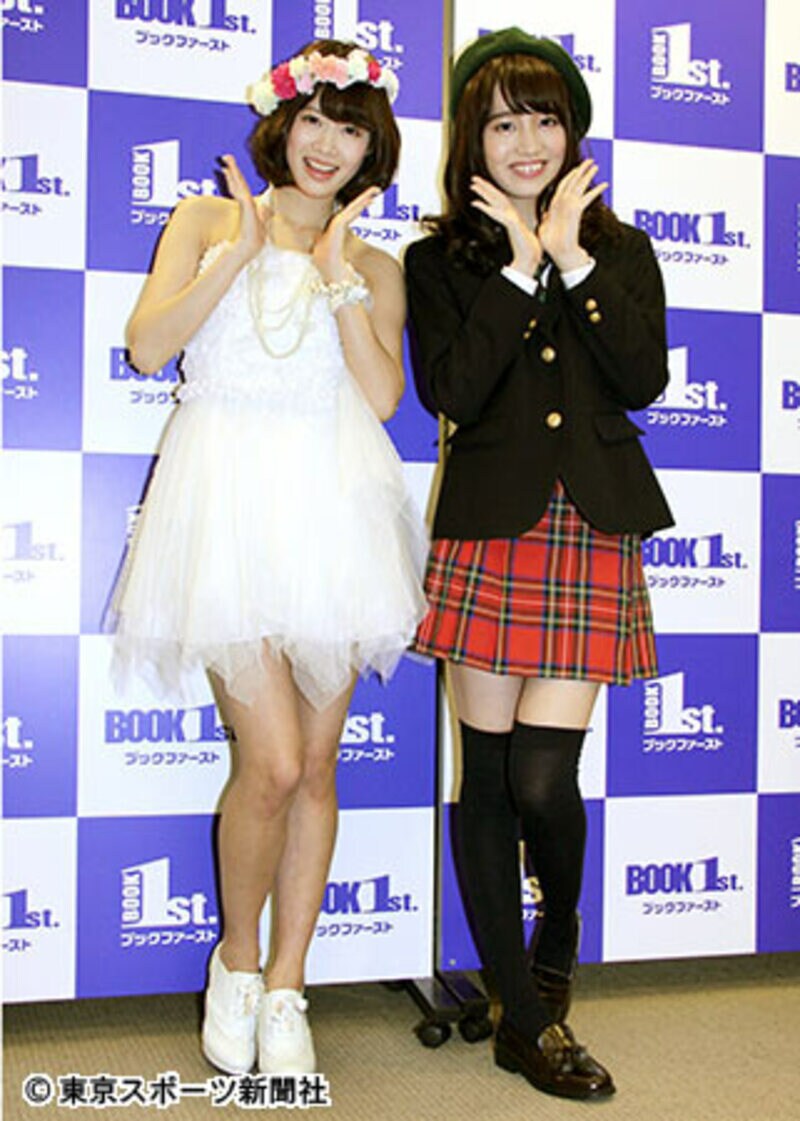 2015年カレンダーの発売記念イベントを行った伊藤(左)と石田